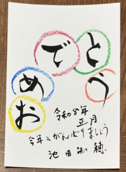 帰省していた娘も慌ただしく戻って、私はすでに筆を持っている。出来るだけ少なくと思っても届いた年賀状にはお返事を書きます。筆と仲良しの一年になりそう!